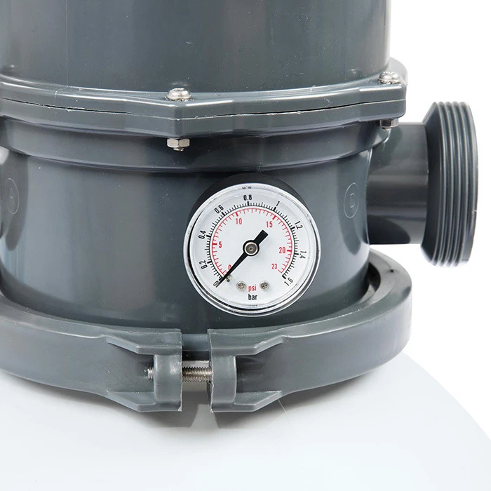Le filtre à sable Bestway Flowclear fonctionne aussi bien avec du sable qu’avec du média filtrant dont la granulométrie recommandée est 0,45-0,85 mm. Il est également possible d’utiliser des balles filtrantes. Pratique, la rotation à 360° de la bride facilite l’installation de votre filtre à sable. Simple, le manomètre permettra une lisibilité parfaite du débit de filtration.