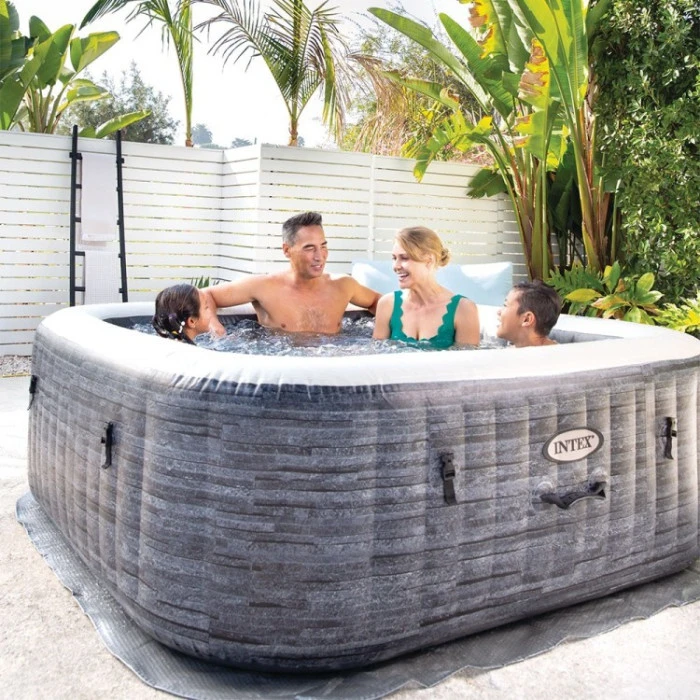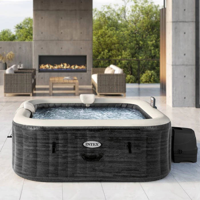 Avec ce spa Ardoise, Intex propose un 5ème coloris de spa gonflable, il s’agit d’un aspect Pierre grise qui donne un aspect tendance et chic.