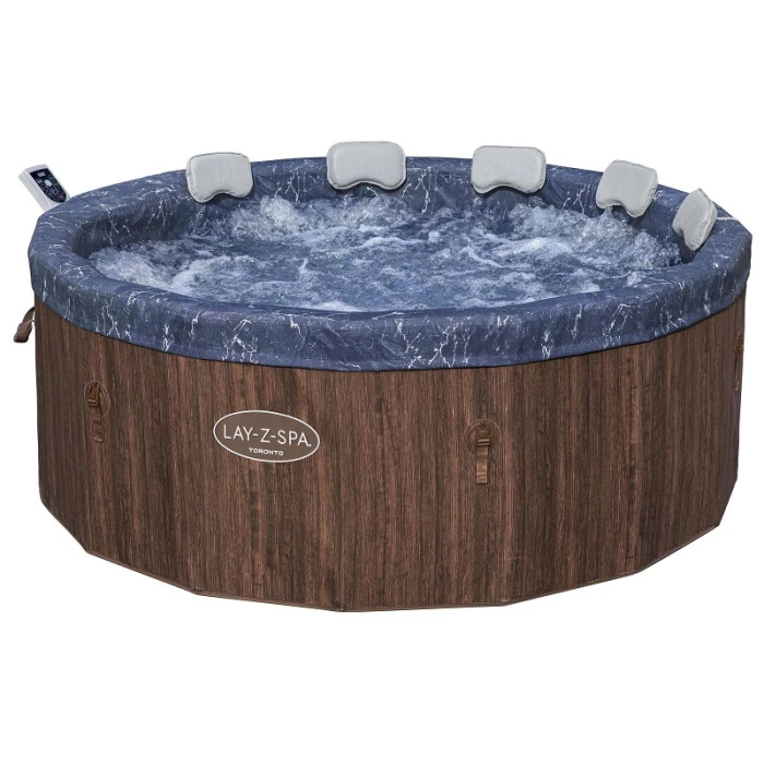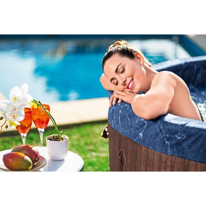 Retrouvez tout le savoir-faire de Bestway dans ce joli spa Toronto au look marbre bleu et bois. Un design qui associe noblesse et authenticitĂ© et qui se mariera parfaitement avec toutes les terrasses ou jardins !Â